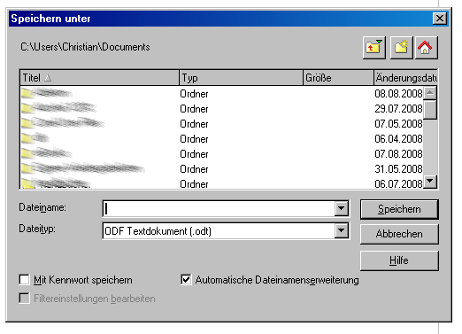 Ich weiß nicht, ob es diese Option bei den Linux-Distributionen, speziell der aus dem Ubuntu-Repository, gibt, aber Du könntest noch mal schauen, ob es unter Extras>Einstellungen>OpenOffice.org>Allgemein>Allgemein die Option "OpenOffice.org-Dialoge verwenden" gibt. Wenn die deaktiviert ist, nutzt OOo die Öffnen-/Speichern-Dialoge des Betriebssystems. Ist sie aktiviert, verwendet OOo seine eigenen Dialoge, das sieht dann (unter Vista) ungefähr so aus: [attachment=0]2008-09-01_121052.png[/attachment]