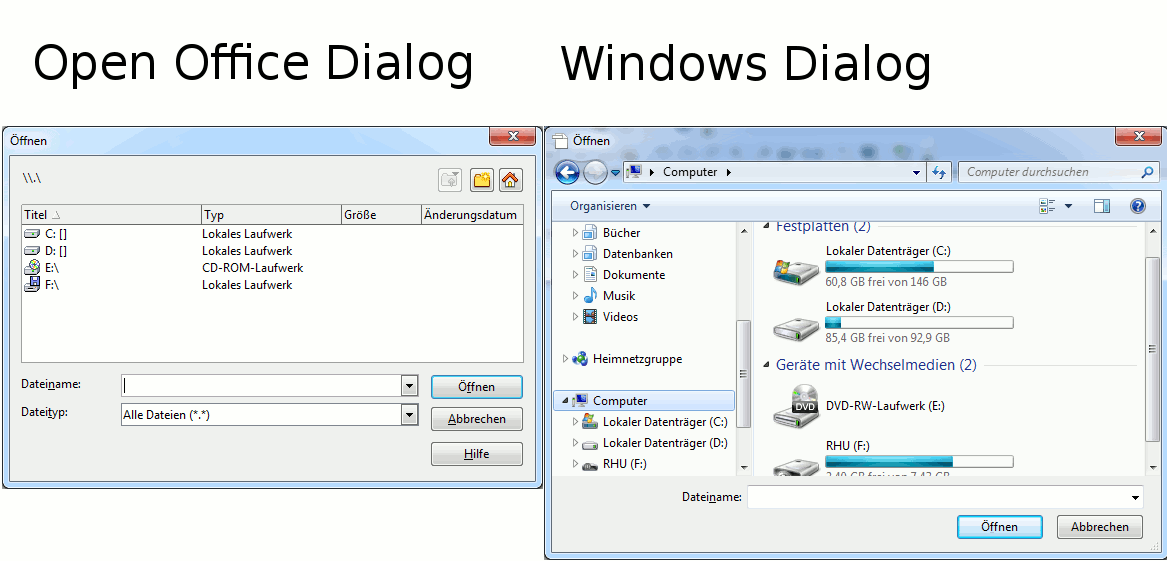Bei mir unter W7 zeigen alle beide meine sämtlichen lokalen Laufwerke, andere habe ich leider nicht:
