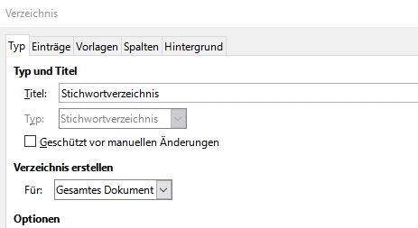 Nachdem ich diese Datei richtig eingestellt habe, bleibt es dabei, dass beim Aktualisieren das Wort Stichwortverzeichnis kommt