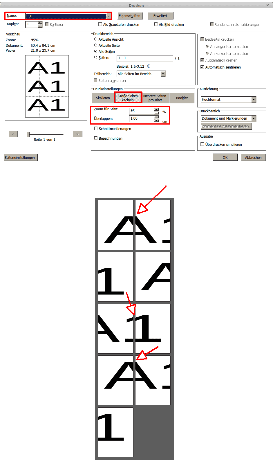 Hier könnte ich dir den Export nach PDF empfehlen, dann mit Foxit als PDF "ausdrucken": siehe Screenshots... Die Klebekanten kann man im unteren Teil des Screenshots sehr schön erkennen. Ein Plakat im Format DIN A1 wurde auf 9 DIN A4 Seiten als PDF "ausgedruckt".Ralle81 hat geschrieben: Mo, 13.01.2020 00:47als Poster ausdrucken, d.h. der Druck soll auf mehrere DIN-A4-Seiten ausgedruckt werden, am besten noch mit Klebekanten.