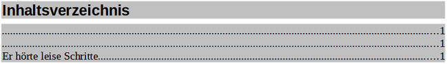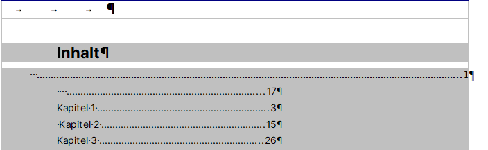 - Über dem Eintrag für Kapitel 1 befinden sich immer noch zwei unnötige Zeilen mit Füllzeichen und Seitenzahl, die Namen habe ich schon entfernen können, der Rest will aber einfach nicht verschwinden.